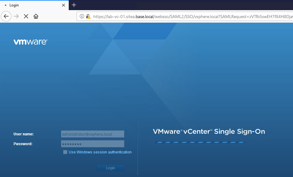 Step 2 – Provide username as administrator@vspheredomain and SSO administrator password.