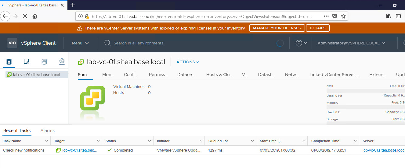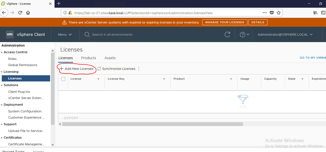 Configuring vCenter Server Licence