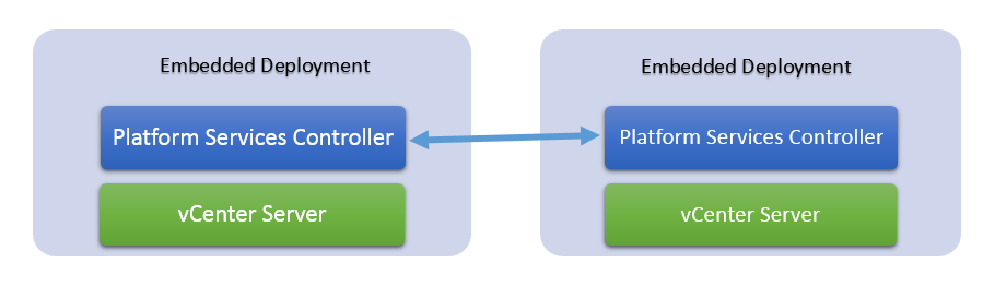 In embedded deployment, a single server is deployed with both PSC as well as vCenter server services. It will have its own single sign-on domain with single site. After vCenter 6.5 Update 2, you can join other embedded deployment to create Enhanced linked mode.