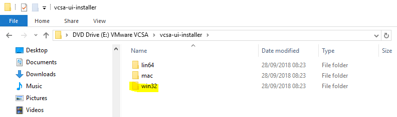 Step 2 – Navigate to vcsa-ui-installer and then inside operating system folder from which you are running installer. In my case, it is windows, hence win32
