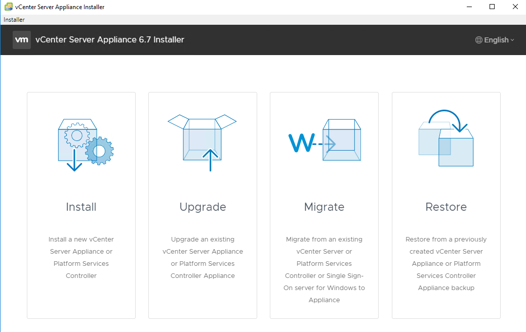 - Installer – Deploy a new vCenter server Appliance