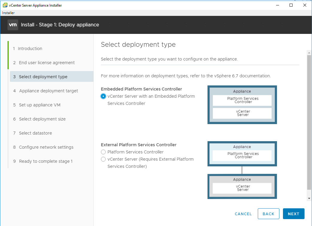 As we see in first objective that vCenter server comes in two flavors i.e. vCenter Server Appliance and vCenter server for windows. So before we can starting deploying vCenter server, we need to decide on deployment model. When we say deployment model, we are talking about how Platform services controller will be deployed. We can deploy vCenter server with embedded Platform Services Controller or with an external PSC.