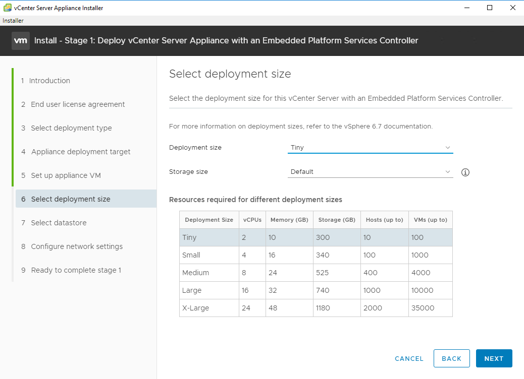 - vCenter server with Embedded PSC