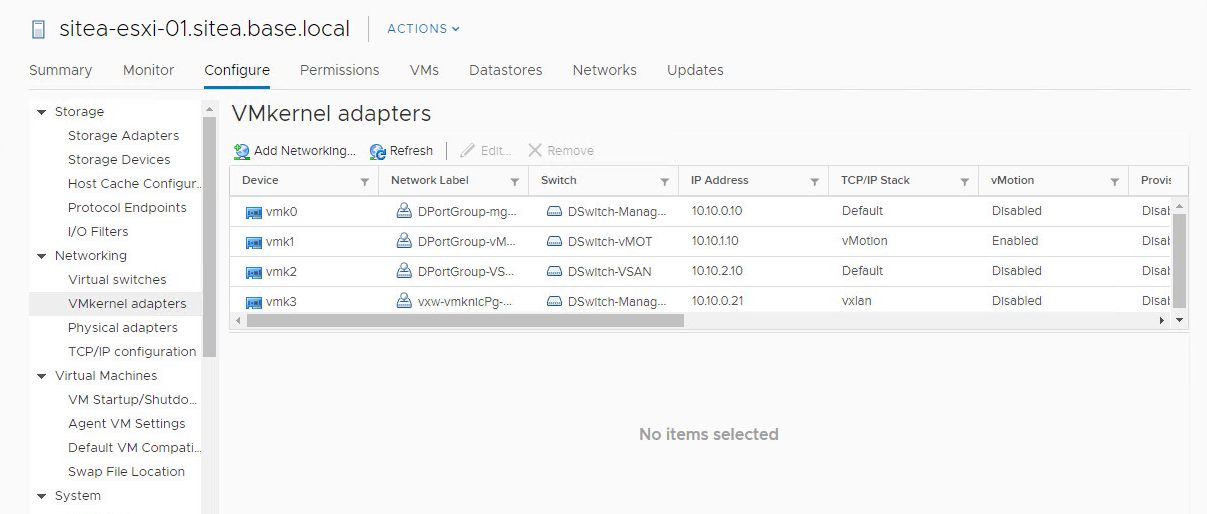 Step 2 – Go to Configure -> Networking -> VMkernel adapters