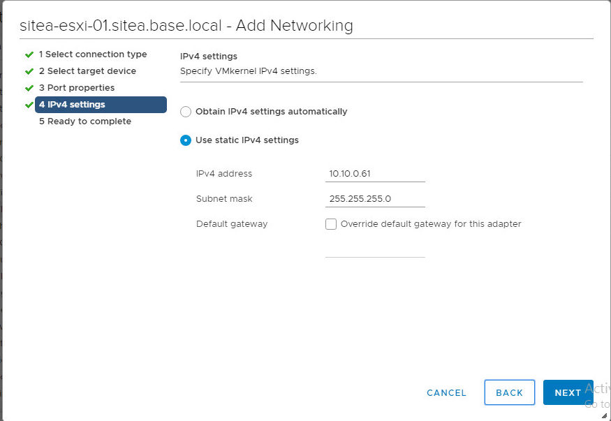 Step 3 – Click on Add Networking to add a new VMkernel Adapter