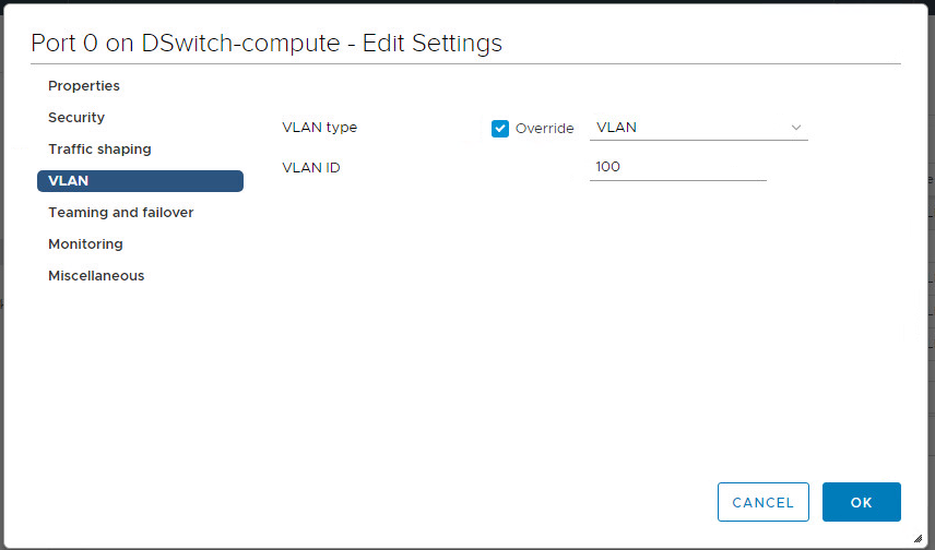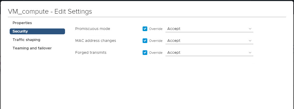 Step 4 – Click ok and then go to individual port to override inherited policies from distributed port group.