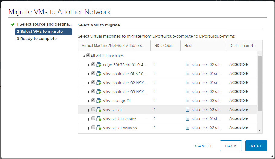 Step 3 – Click next and select All Virtual Machines to migrate all or select individually to migrate selected VMs.