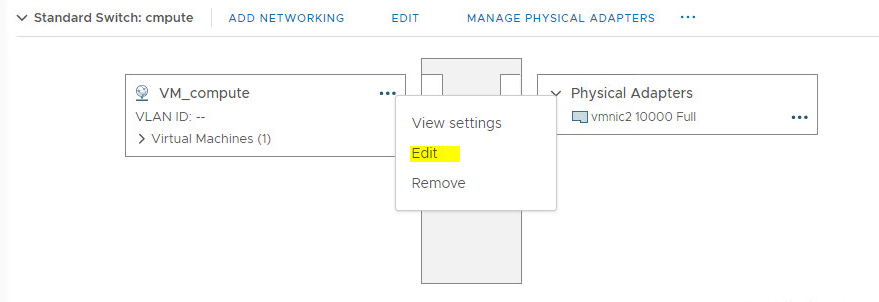 Step 3 – Click on three dots (…) beside standard port group to edit network policies at port group level.