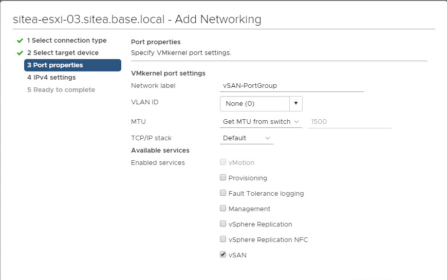 Step 3c – Provide IPv4 address either using DHCP or static and click next to create a new VMkernel Port.