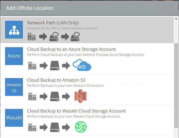 You can take backup directly to your choice of cloud providers. Out of Box, integration with major cloud providers such as Azure and AWS is supported. All you need is access to cloud storage account, connectivity and rest can be easily accomplished by Altaro itself.