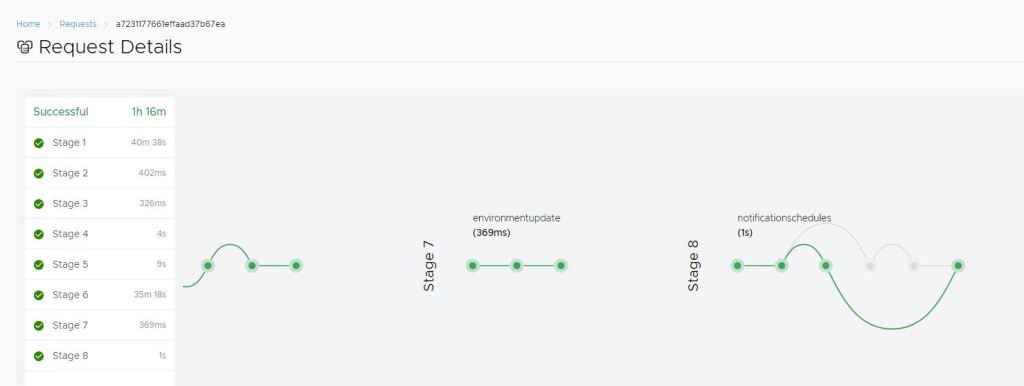 - Again, vRA deployment progress can be monitor through vRLCM by going to requests tab. Also, if deployment got failed in between, you can retry it from within vRLCM.