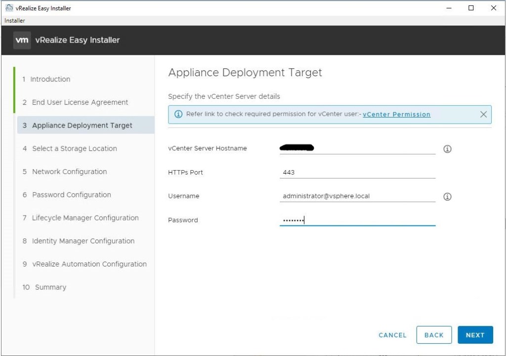 - vCenter server FQDN