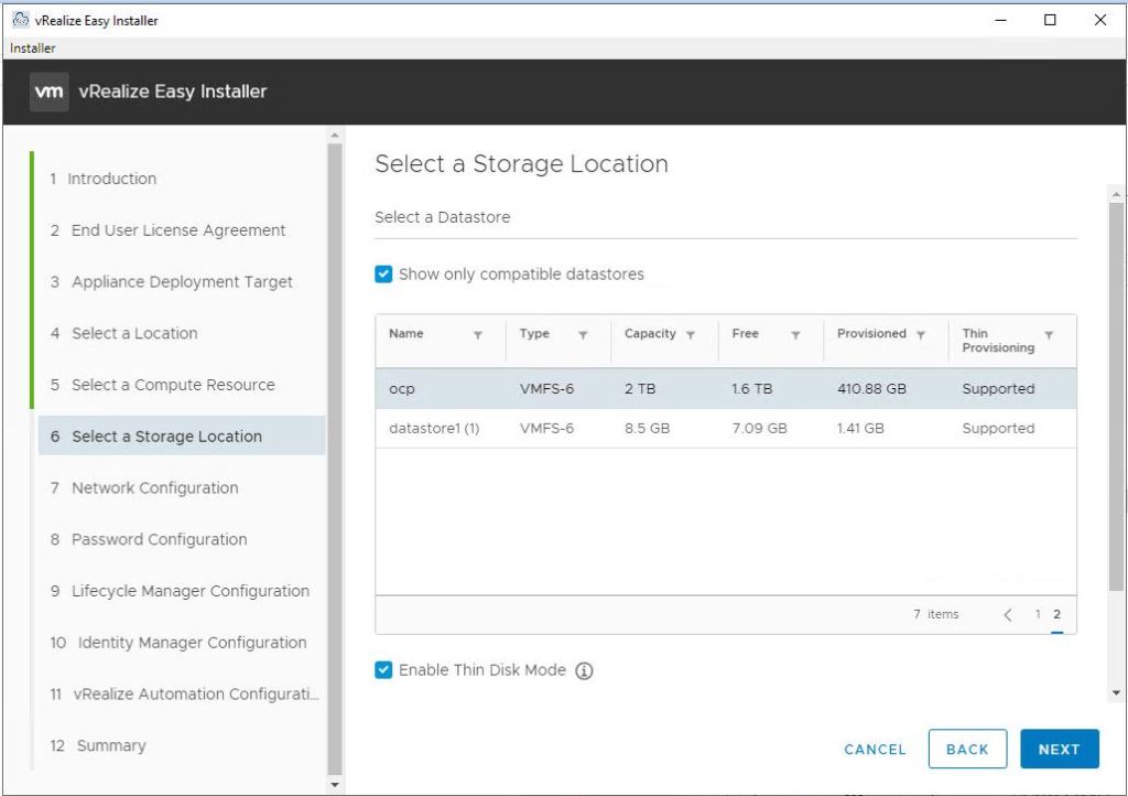 - Select target datastore to provide storage for appliance VMs.