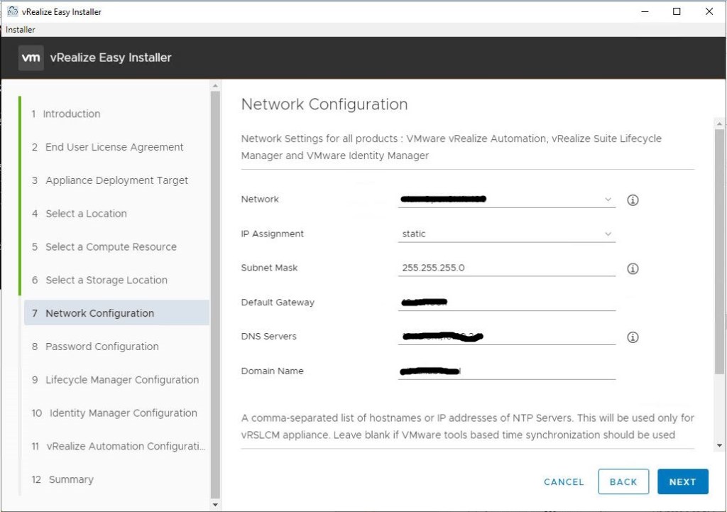 - Similarly, provide IP Configuration details for vRA environment. Again couple of things to remember: