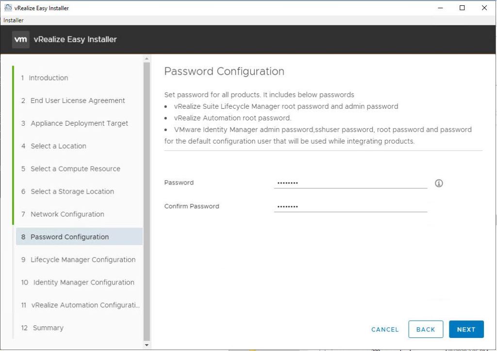 - Provide default password which will be used by Lifecycle Manager for installations.
