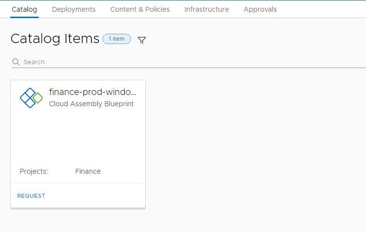1. Navigate to Catalog. You should be able to see catalog item which you have shared earlier with users.