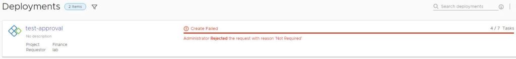 1. User will see that request for deployment is rejected along-with comments provided by approver.