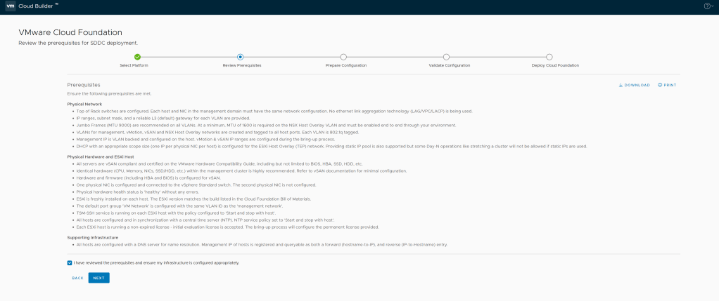 - During deployment, it will setup vCenter, NSX-T Manager and SDDC Manager. Its the standard deployment process which will be followed except setting up AVN which will be covered in Part 3.